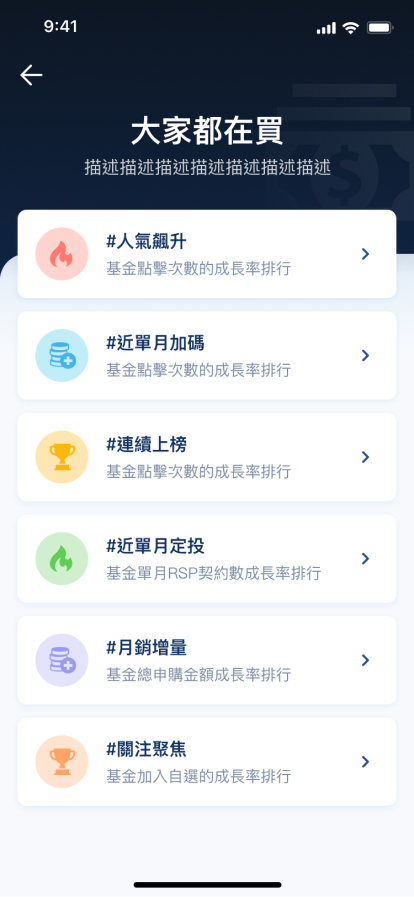 在大戶豐APP中,海棠設計承襲過往的專案經驗,我們透過精心規劃和設計的介面元素,以直觀且易於理解的方式展示基金投資的核心概念、策略和相關資訊。同時,我們注重提供高質感的介面設計,融入現代化且有特色的視覺風格和元件使用,提升使用者的視覺享受和操作愉悅感。這樣的設計手法有助於提高使用者對於基金投資的認知和信心,並創造一個獨特的理財體驗。