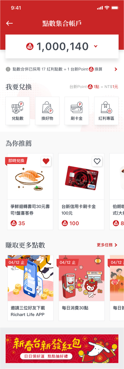 海棠具備豐富的多元產業設計經驗,我們能夠靈活應對各種功能改版需求。在Richart Life APP的專案中,我們不僅關注金融相關服務的設計,還能整合生活圈服務串聯、點數查兌、行動支付等多項功能,確保整體使用者體驗的一致性和流暢度。我們將以專業的設計知識和實踐經驗,確保每一項功能改版都能符合使用者的期待,並提供優質的設計方案。